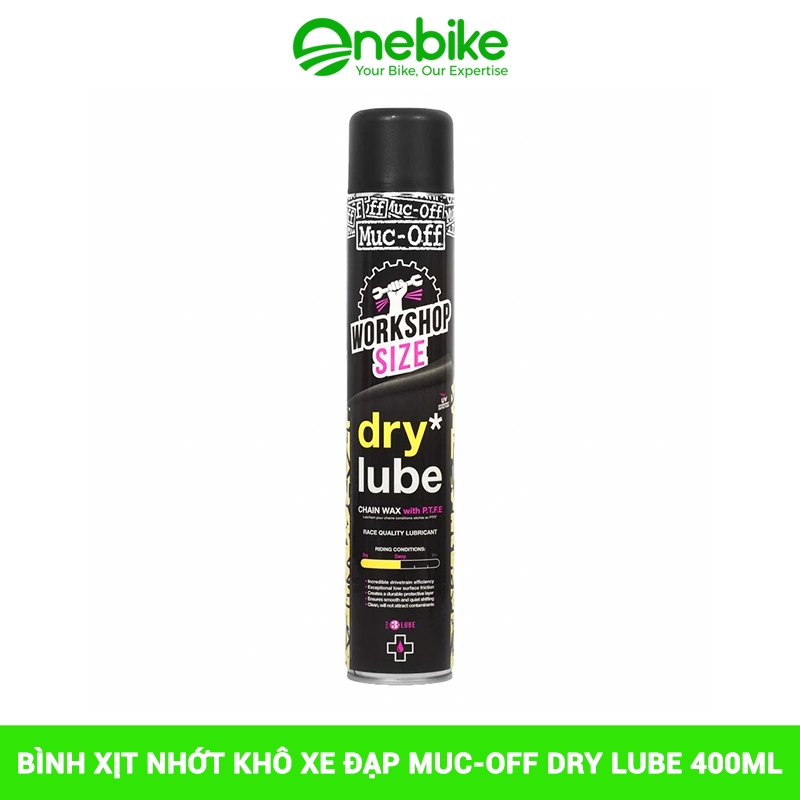 Bình xịt nhớt khô xe đạp MUC-OFF DRY LUBE 400ml có nhớt xịt Sên Nền Sáp với công thức chịu được áp lực cao thích hợp sử dụng cho các loại sên tiên tiến.