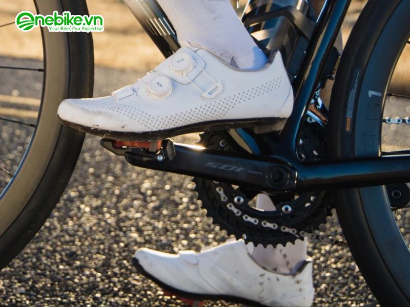 Hai nút khóa vặn BOA® L6 cho phép điều chỉnh độ ôm chân nhanh chóng, chính xác và dễ dàng ngay cả khi đang đạp xe. Thiết kế kép giúp phân bổ lực đều và tối ưu khả năng tùy chỉnh theo form chân của từng người.
