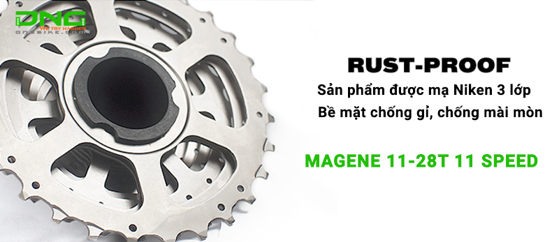 Líp xe đạp Magene 11-28T 11speed được đánh giá khá tốt về khả năng chống ăn mòn và chống gỉ của sản phẩm, bởi bề mặt líp được mạ 3 lớp Niken cao cấp.