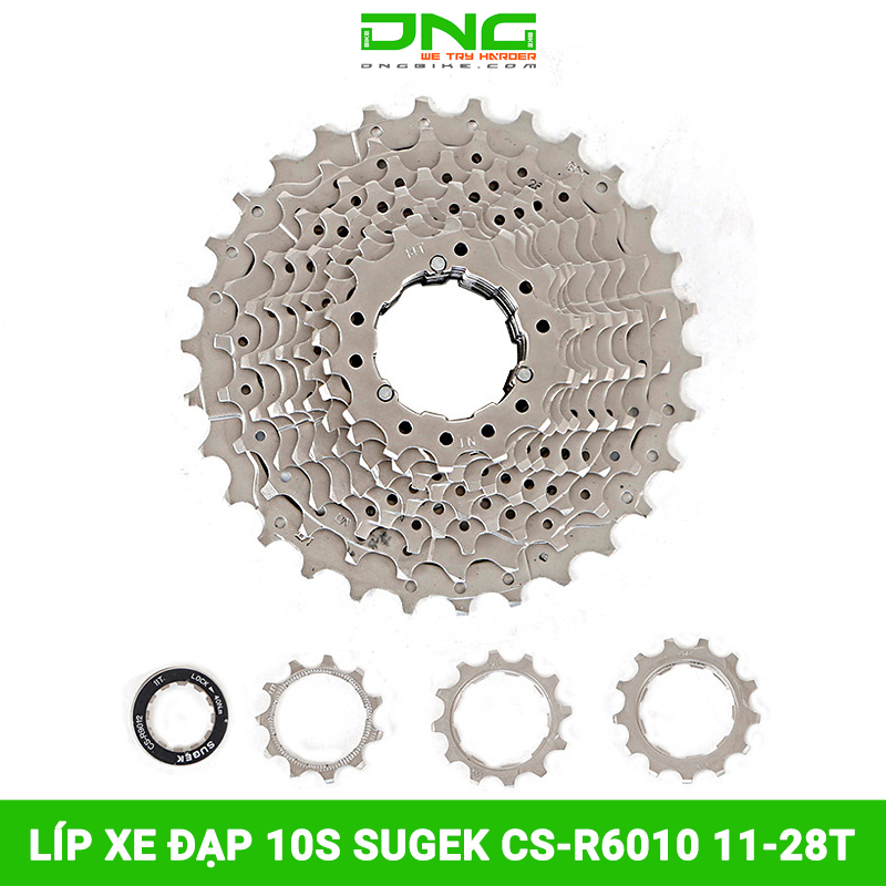 Líp xe đạp 10S Sugek CS-R6010 11-28T là bộ líp 10 tốc độ sử dụng cho cối líp thả, chuyên dùng để thay thế líp đã cũ mòn không còn sử dụng được, phù hợp cho các dòng xe đạp thể thao như xe đạp đua, xe đạp đường trường, touring đường phố,...