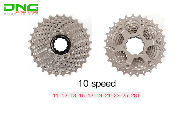 Líp xe đạp Sugek CS-R6010 11-28T thích hợp với bộ truyền động líp sau 10 tốc độ, số răng 11-28T tương đương với các líp (11-12-13-15-17-19-21-23-25-28T), bánh răng bằng thép chắc chắn, bền.