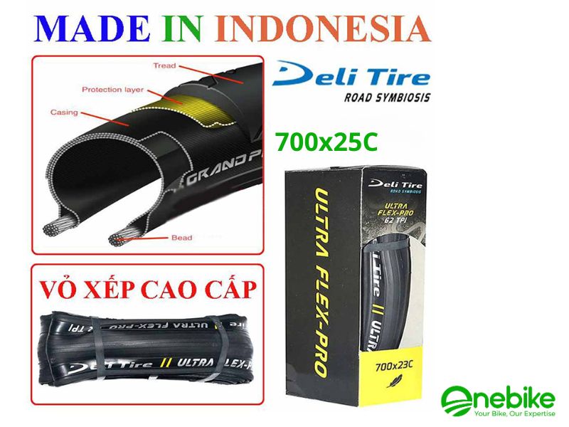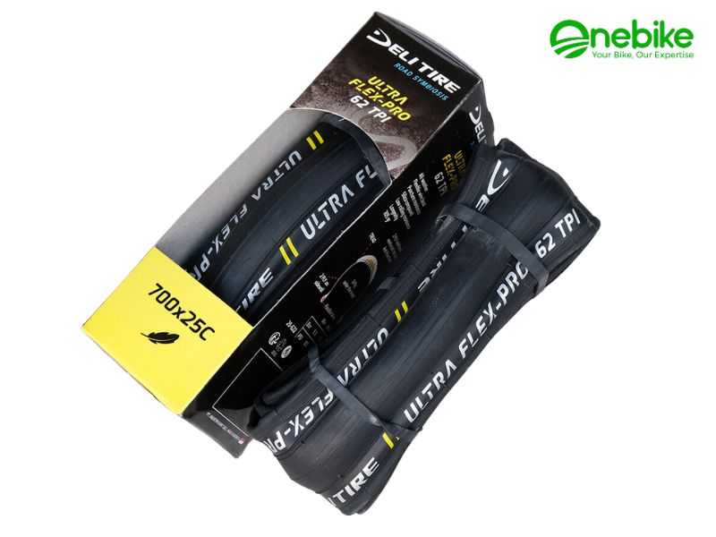Lốp xe đạp DELI ULTRA FLEX-PRO 700c 700x25c là dòng lốp xe đạp thể thao thuộc thương hiệu Deli Tire, được sản xuất tại Indonesia. Kích thước lốp 700x25c, trọng lượng khoảng 305g (700x25c), TPI 62, PSI (80 - 120), BAR (5.5 - 7.0).