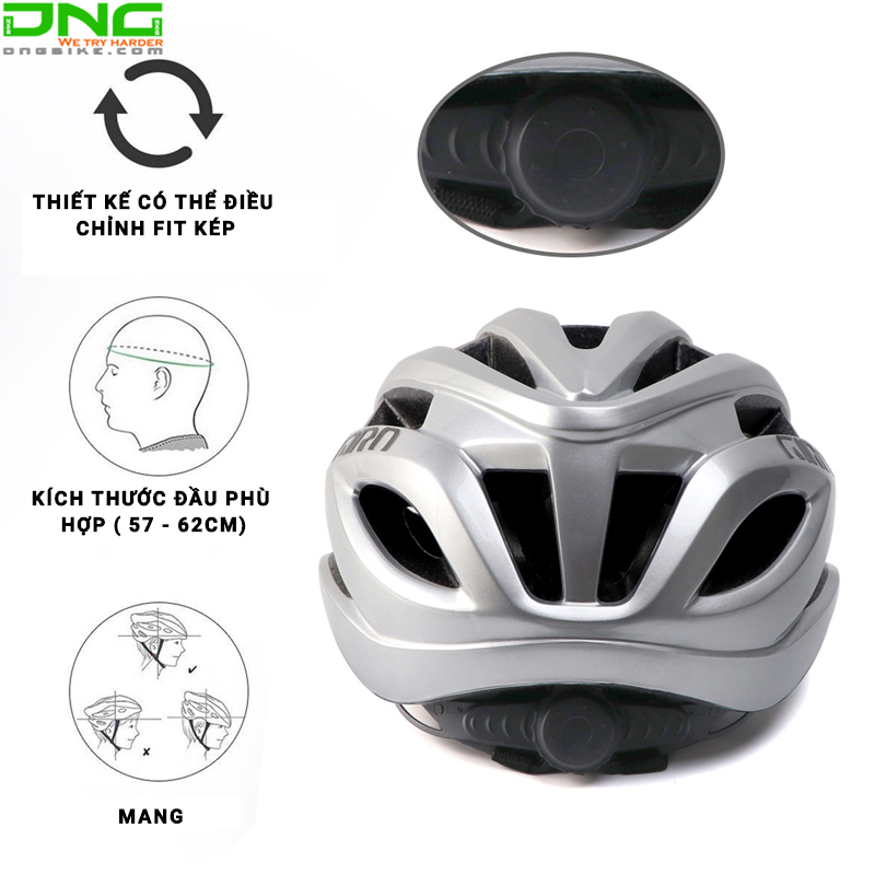 Nón bảo hiểm xe đạp Giro sử dụng công nghệ đúc một mảnh cùng với lớp lót ép nóng bằng nhung (có thể tháo rời và giặt được).