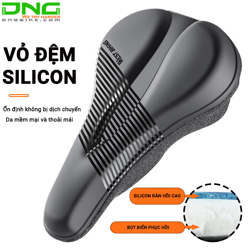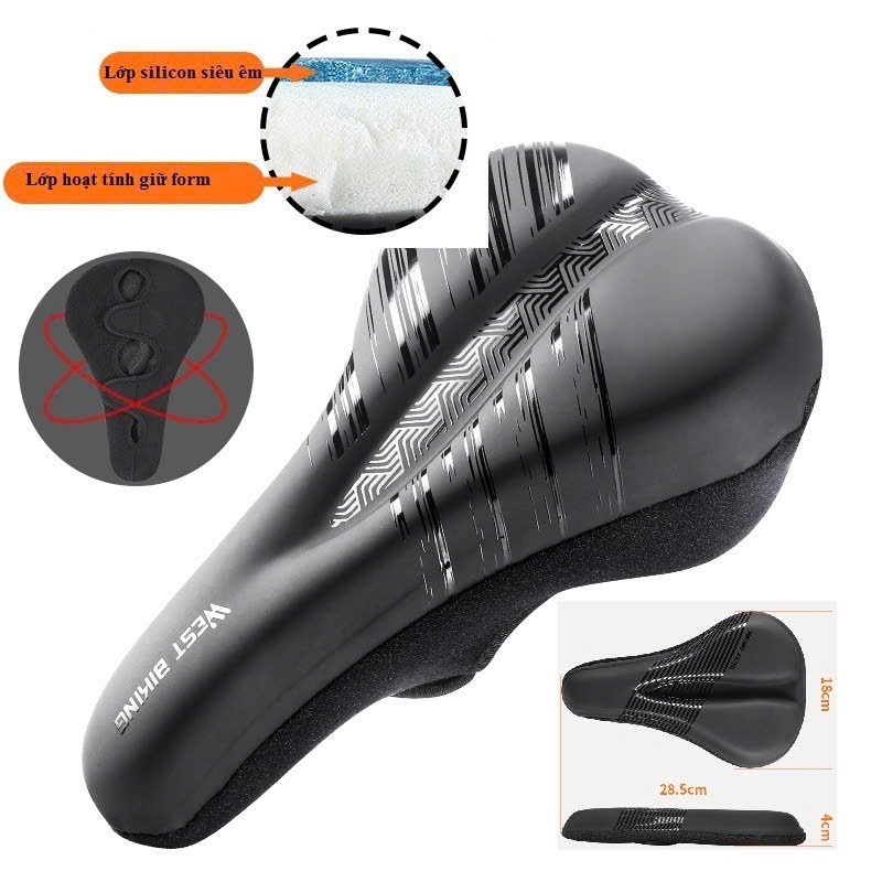 Nệm bọc yên xe đạp WEST BIKING sử dụng chất liệu Silicon êm ái bền bỉ với độ đàn hồi cao, bọt biển phục hồi, không bị xẹp sau thời gian dài sử dụng giúp người đạp chống mỏi và ê mông khi di chuyển trên những cung đường địa hình dồng xóc. Phù sử dụng cho các dòng xe đạp địa hình, xe đạp touring, xe đạp đường phố,...