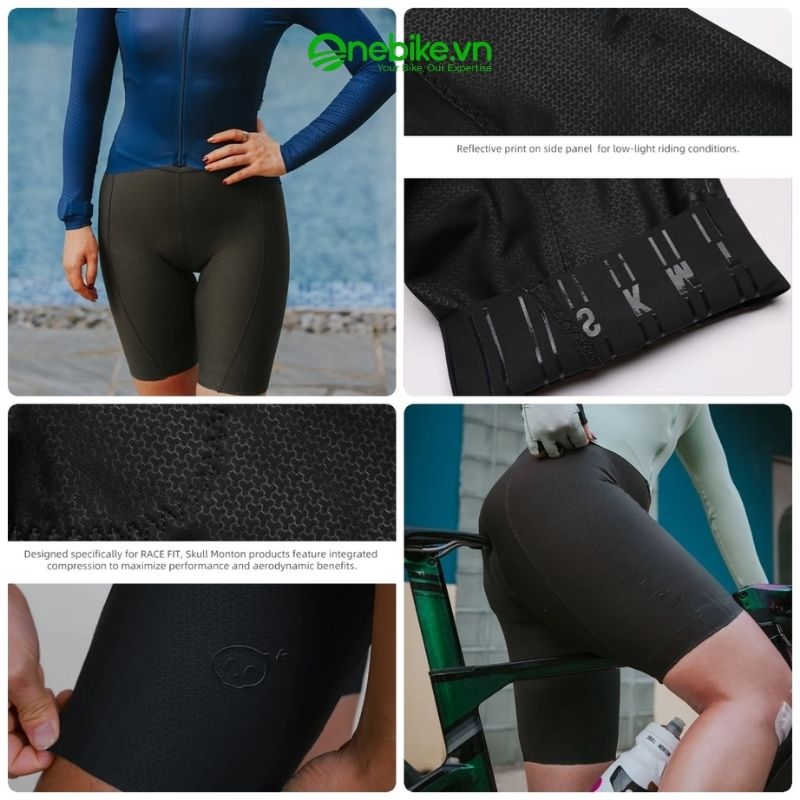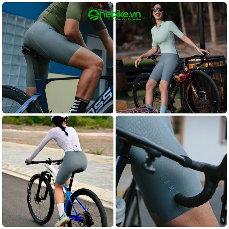 Quần được thiết kế để ôm sát cơ thể một cách tự nhiên, sử dụng vải nén co giãn cao cấp nhằm hỗ trợ cơ bắp và mang lại cảm giác tự do khi vận động. Chất liệu vải có khả năng hút ẩm nhanh, giữ cho cơ thể luôn khô ráo và thoáng khí, kể cả khi đạp xe trong điều kiện nắng nóng hoặc thời gian dài.