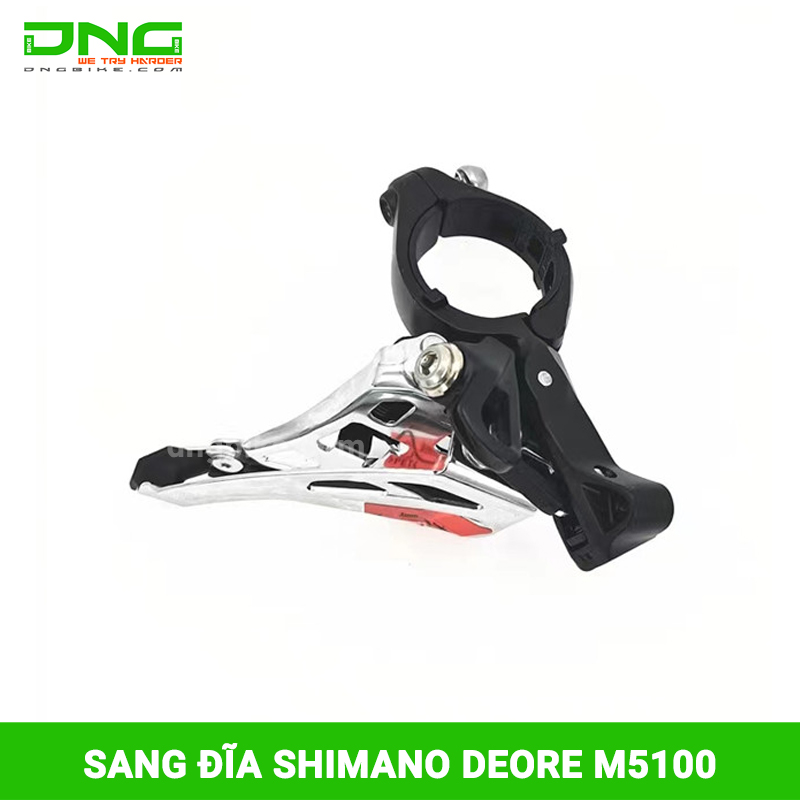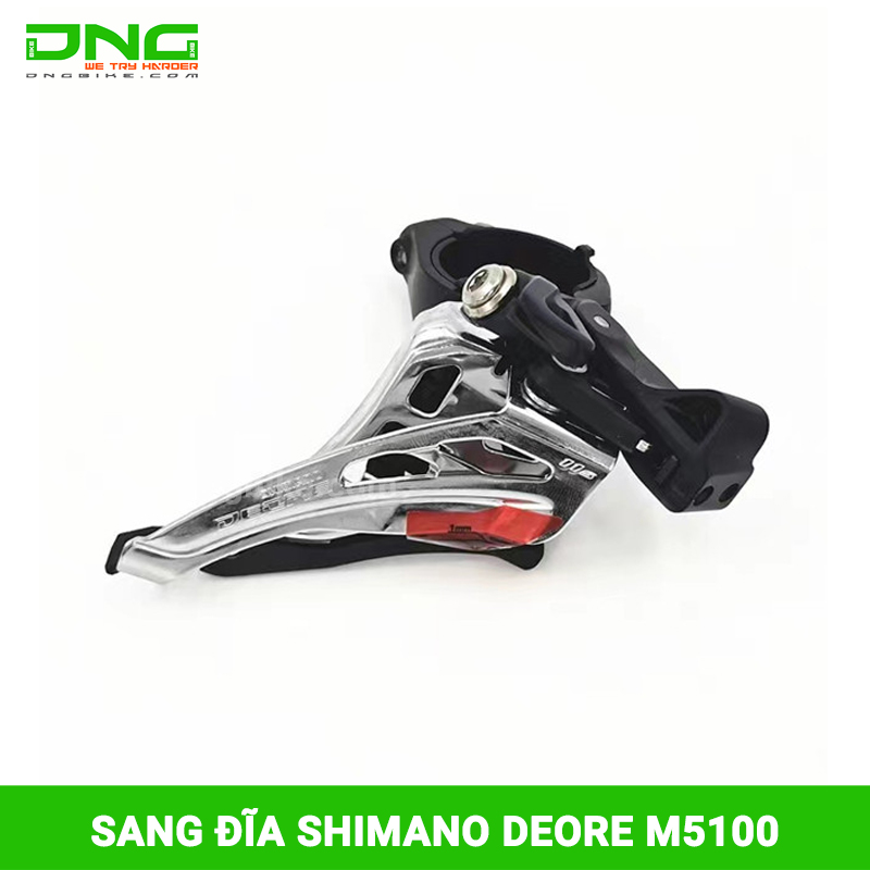 Sang đĩa Shimano Deore FD-M5100 là một trong những sản phẩm sang đĩa của hãng Shimano, được sử dụng để thay thế sang đĩa trên xe đạp loại Touring hoặc MTB. Sang dĩa được thiết kế chắc chắn và độ bền cao, giúp tăng độ chính xác và mượt mà trong việc chuyển đề, đồng thời cũng giúp giảm sự mệt mỏi khi điều khiển xe.