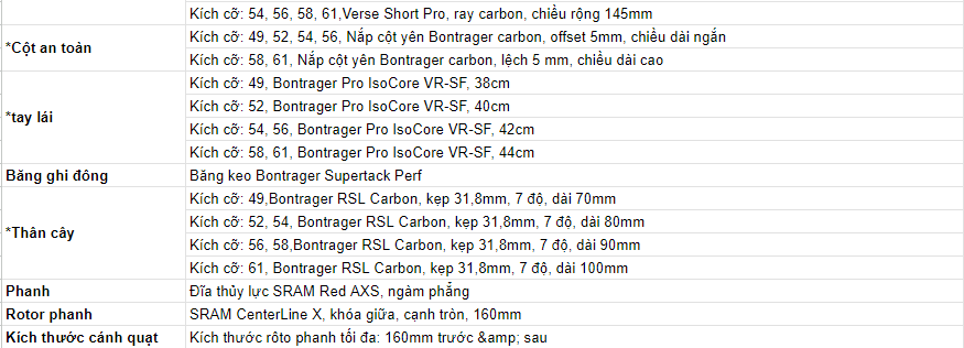 - Bảo hành TRỌN ĐỜI cho khung xe, bánh bontrager và vành xe