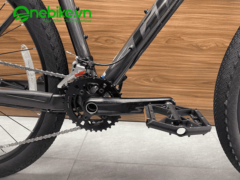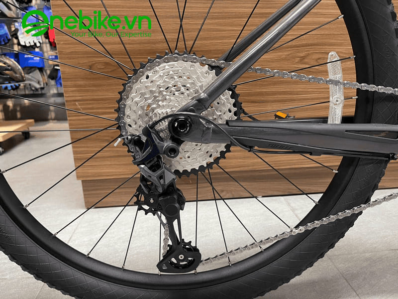 Hệ thống phuộc Crest 34 hành trình 100 mm giúp xe vận hành ổn định và chính xác trên những cung đường mòn kỹ thuật. Bộ truyền động Shimano SLX 2×12 mang lại dải số linh hoạt, đáp ứng tốt cả leo dốc lẫn đường trường.
