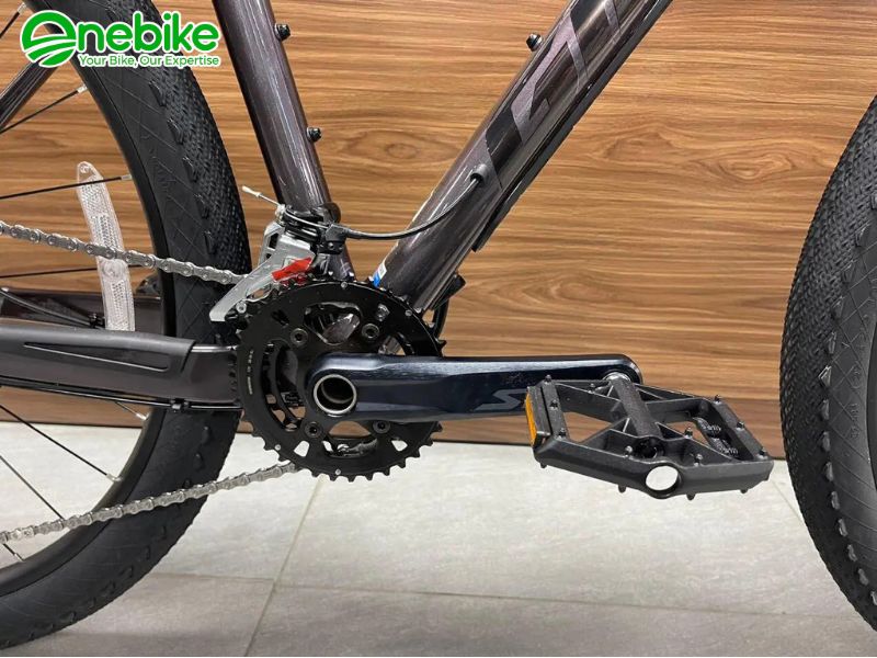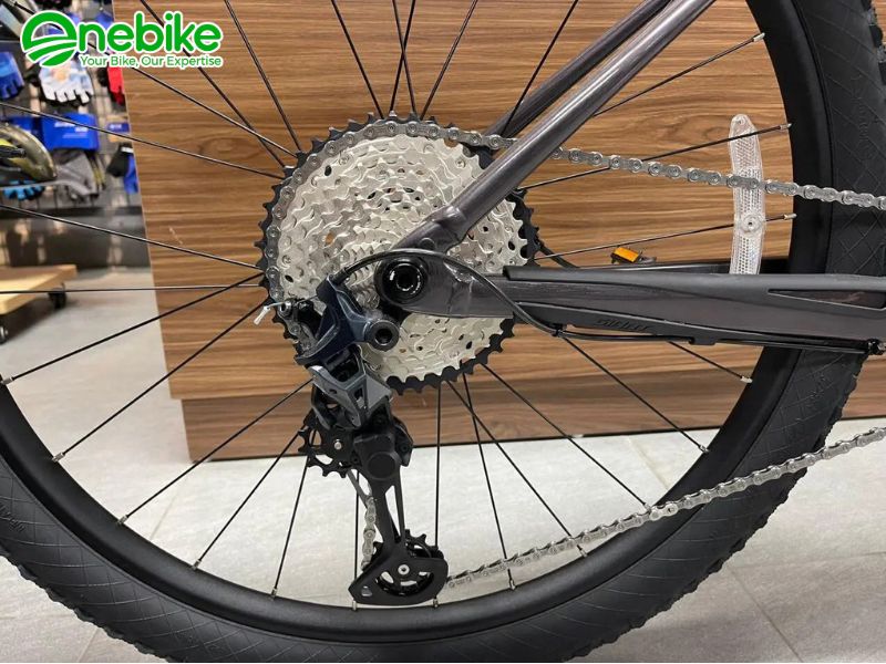 Hệ thống phuộc Crest 34 hành trình 100 mm giúp xe vận hành ổn định và chính xác trên những cung đường mòn kỹ thuật. Bộ truyền động Shimano SLX 2×12 mang lại dải số linh hoạt, đáp ứng tốt cả leo dốc lẫn đường trường