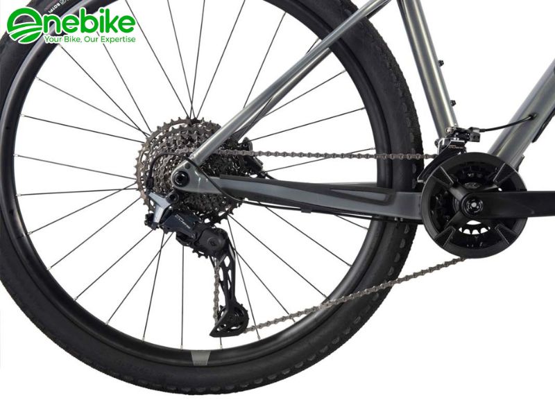 Xe được trang bị hệ thống truyền động SHIMANO CUES 2×11 tốc độ với dải tỷ số truyền đa dạng, giúp người lái dễ dàng thích ứng với nhiều phong cách đạp xe khác nhau — từ đường bằng cho tới những cung dốc kỹ thuật.