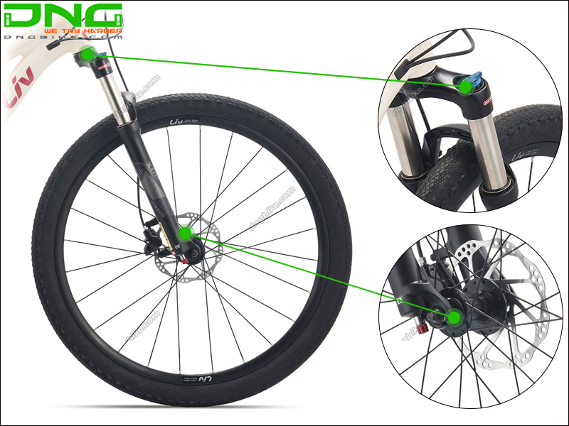 | Phuộc trước | Suntour XCR-AIR, hợp kim MG |