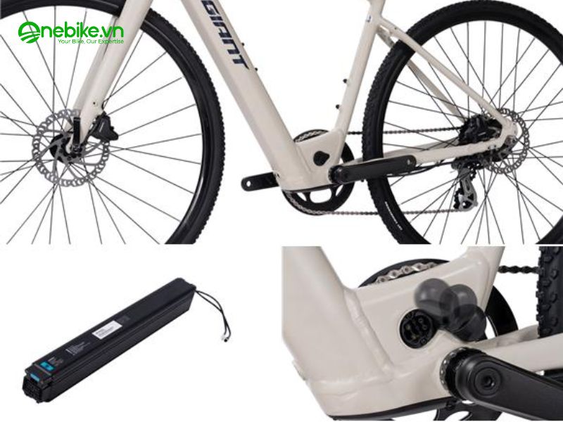 Xe được trang bị khung nhôm cao cấp GIANT ALUXX siêu nhẹ, tích hợp pin Lithium 244Wh và động cơ GIANT SYNC DRIVE vào khung, giúp tổng thể gọn gàng, cân bằng trọng lượng trước-sau hiệu quả. Trọng lượng xe chỉ 16,6kg bao gồm cả pin, đem lại cảm giác nhẹ nhàng khi điều khiển, đồng thời vẫn đảm bảo hiệu năng vận hành vượt trội.