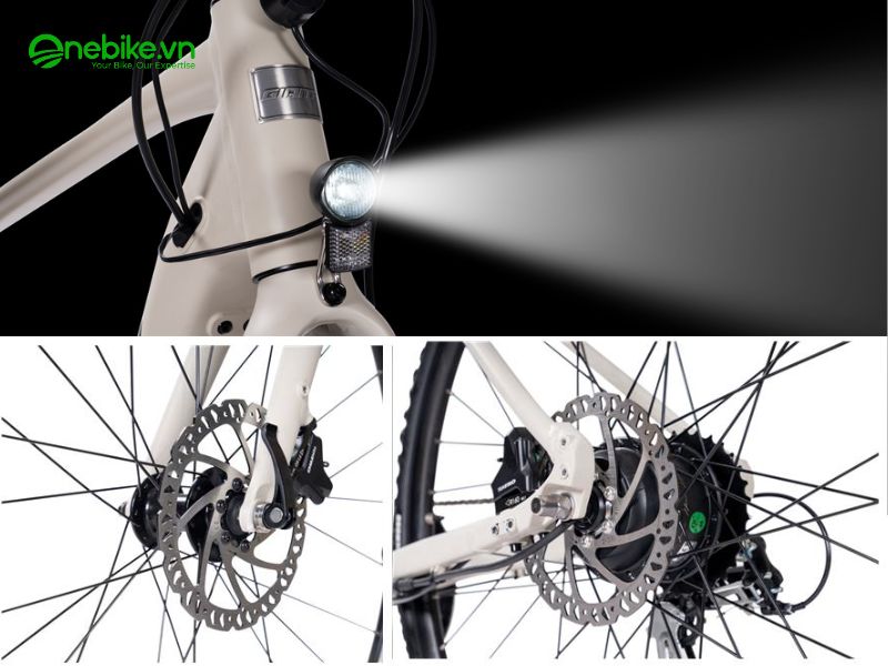 Xe được tích hợp phanh đĩa 160mm trước và sau, đảm bảo hiệu suất phanh ổn định ngay cả trong điều kiện ẩm ướt, địa hình gồ ghề. Ghi đông tay ngang và tay phanh thiết kế nhỏ gọn, nhẹ, dễ điều khiển cùng với tay cầm chống trượt mềm mại, thấm hút mồ hôi, tạo sự thoải mái tối đa cho người lái.