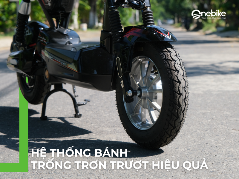 Hệ thống bánh xe tiên tiến nhiều rãnh sâu, gai nhỏ chống trơn trượt hiệu quả, đám bảo an toàn trong điều kiện đường xấu.