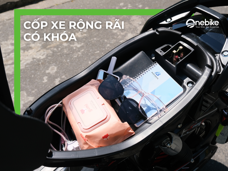 Với tải trọng từ 150 - 200kg, cốp xe rộng có khóa an toàn chứa nhiều đồ hơn, giúp bạn mang theo mọi vật dụng cần thiết, từ áo mưa, túi xách đến những món đồ cá nhân khác.
