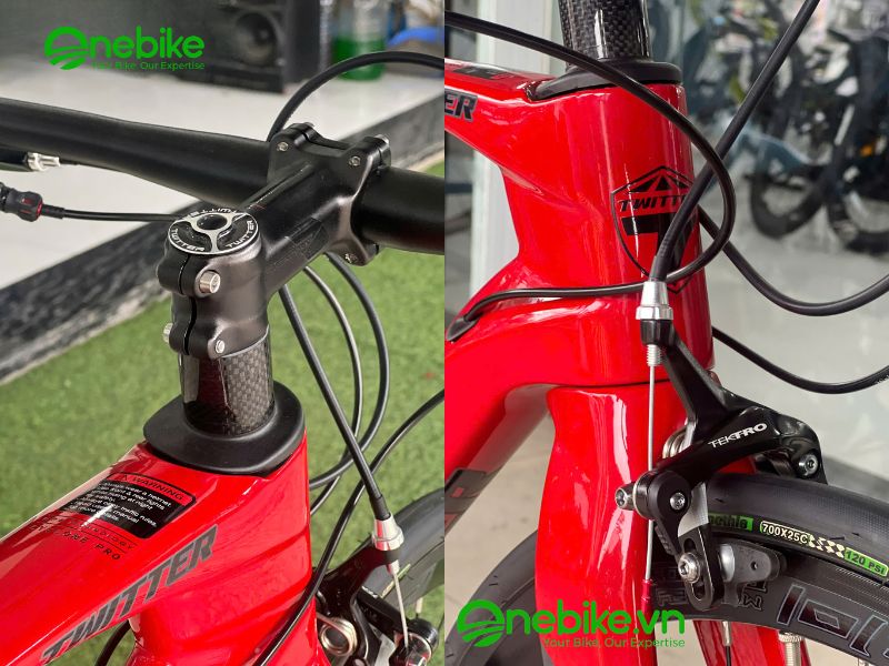 Điểm đặc biệt thứ hai của Xe đạp đua FLATROAD TWITTER CYCLONE PRO RS-24S-V chính là khung carbon liền khối siêu nhẹ và cứng cáp.
