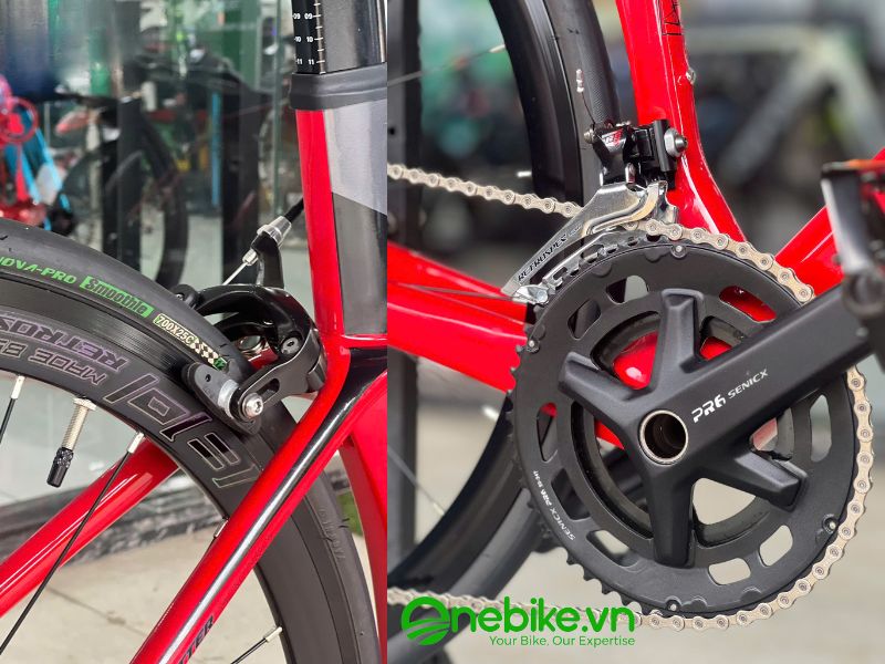 Chất liệu carbon không chỉ giúp giảm trọng lượng của xe mà còn mang lại độ bền cao, chịu được lực tác động mạnh mà không bị biến dạng. Điều này đặc biệt quan trọng đối với các vận động viên đua xe đạp, khi mỗi gram trọng lượng giảm đi đều có thể tạo nên sự khác biệt lớn trong cuộc đua. Ngoài ra, với ưu điểm không mối hàn và thiết kế đi dây âm sườn, hãng đã vừa tăng tính thẩm mỹ cho xe, vừa tăng độ bền của xe trước những tác động của môi trường khắc nghiệt.