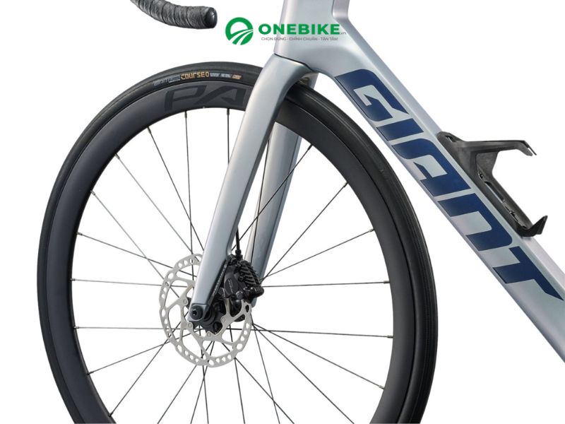 Hệ thống bánh GIANT P-A1 Disc kết hợp lốp GIANT Gavia COURSE 0 Tubeless 700x28C, cho độ bám tối ưu, độ trớn cao và giảm thiểu nguy cơ thủng lốp khi di chuyển đường dài.