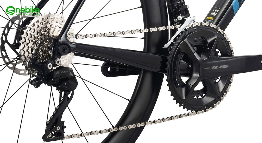 Xe đạp đua GIANT TCR ADV 2+ 2025 trang bị hệ thống Chuyển động Shimano 105 được thiết kế để tối ưu lực khi lên dốc và đảm bảo an toàn khi xuống dốc. Gióng dưới lớn với trục giữa cứng cáp hỗ trợ hệ thống truyền động của xích di chuyển linh hoạt, cân bằng lực giữa hai bên chân đạp. Ngoài ra, phanh đĩa dầu (trước 160mm, sau 140mm) cung cấp hiệu suất phanh nhất quán trong suốt quá trình đạp xe.