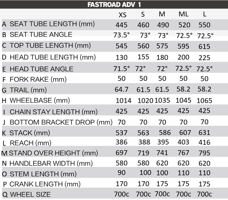 Thông số kích thước Xe đạp GIANT FASTROAD ADV 2 2025