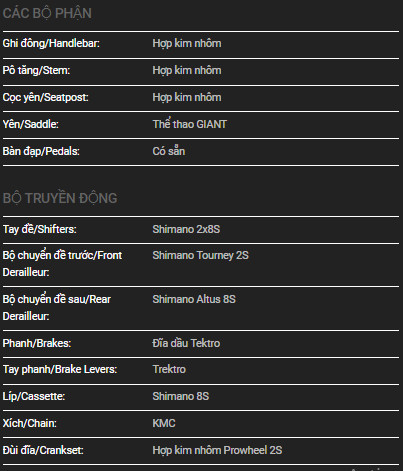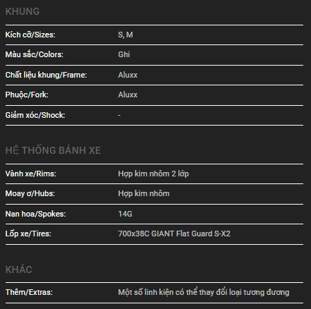 BẢNG THÔNG SỐ XE ĐẠP ESCAPE 1 D-GC 2024