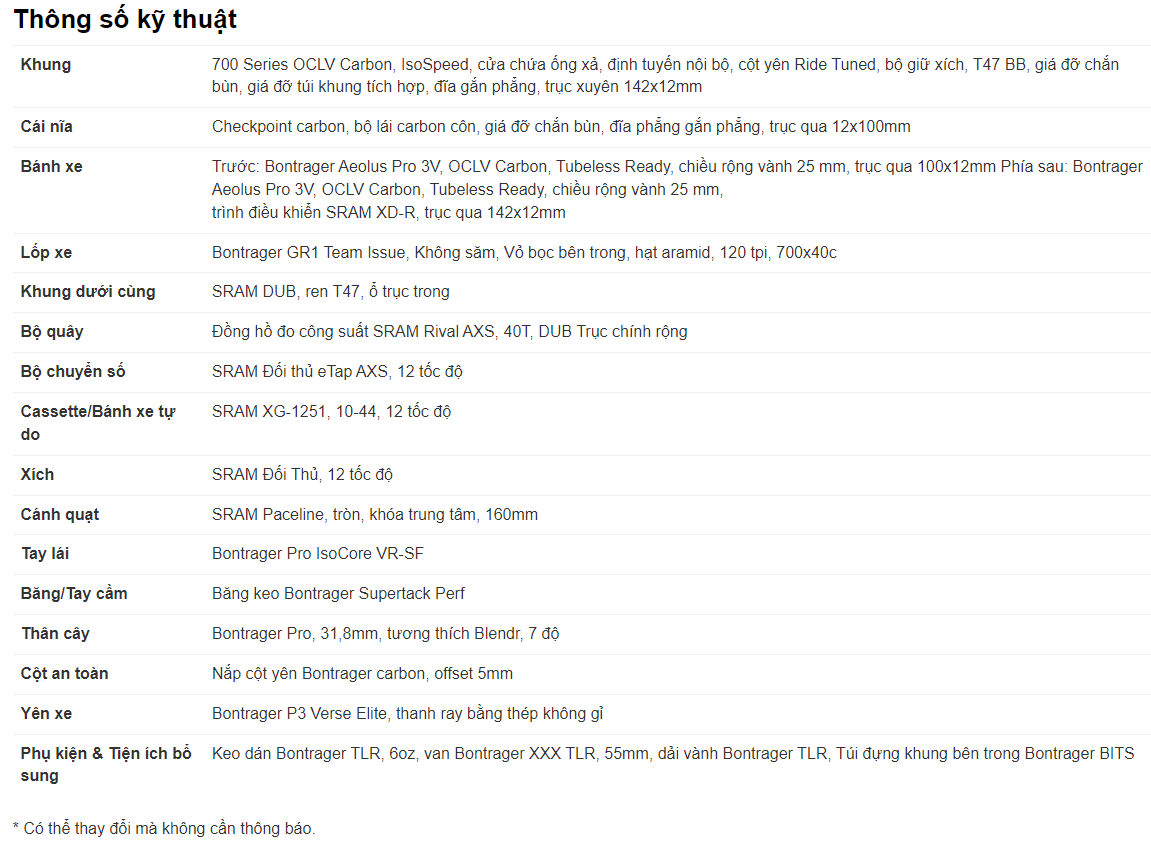 - Bảo hành TRỌN ĐỜI cho khung xe, bánh bontrager và vành xe