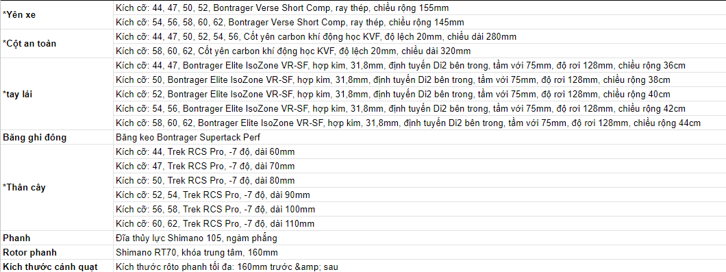 BẢNG THÔNG SỐ XE ĐẠP TREK DOMANE SL 5 GEN4