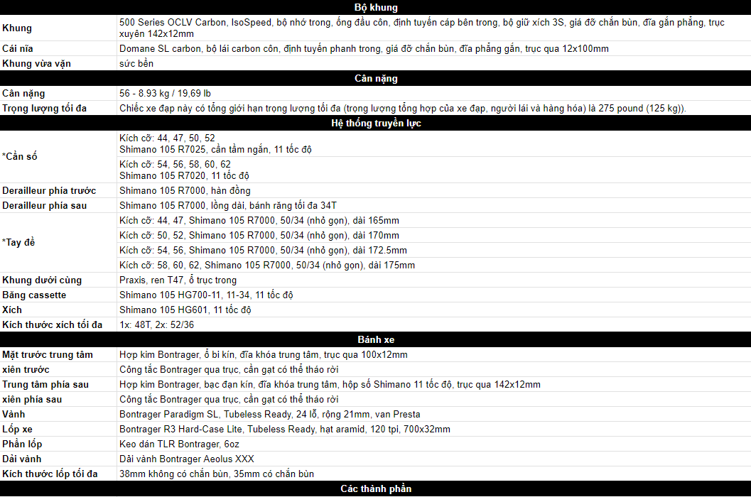 - Bảo hành TRỌN ĐỜI cho khung xe, bánh bontrager và vành xe