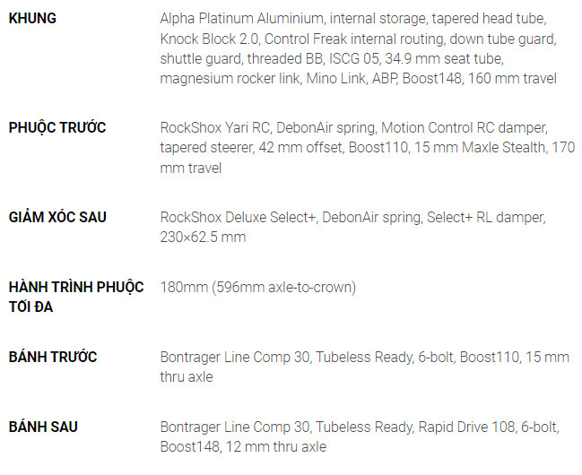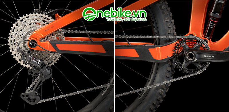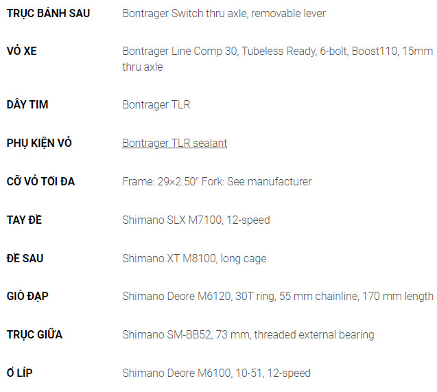 Ngoài ra, hệ thống truyền động Shimano Deore/XT, phanh 4 pít-tông giúp giảm tốc độ tự tin và bánh xe Line Comp 30 hoàn toàn không săm, bao gồm cả keo bịt kín giúp xe chuyển động mượt đem lại hiệu suất cao hơn.
