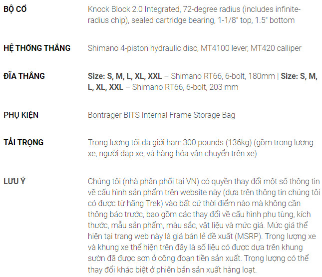 - Bảo hành TRỌN ĐỜI cho khung xe, bánh bontrager và vành xe
