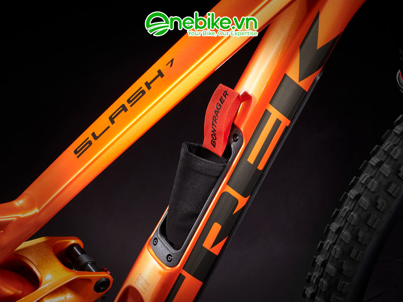 Xe đạp địa hình TREK SLASH 7 trang bị khung nhôm được thiết kế cho những chuyến đi khắc nghiệt với giá đỡ có ren phía dưới, bộ phận bảo vệ ống xả kép, Knock Block 2.0 và hành trình 160 mm với giảm xóc RockShox Select+ và phuộc Yari RC 170 mm. Ngoài ra, xe còn có Knock Block mới, có thể tháo rời có góc lái lớn hơn để giữ dây cáp và ống mềm an toàn mà không làm giảm bán kính quay