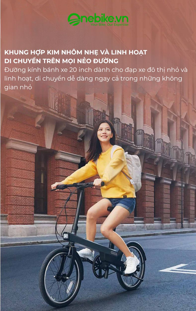 Xe đạp trợ lực điện XIAOMI QICYCLE - C2 là lựa chọn lý tưởng cho những ai yêu thích sự tiện lợi, nhỏ gọn và thông minh khi di chuyển trong thành phố. Với đường kính bánh xe 20 inch, thiết kế hợp kim nhôm nhẹ, linh hoạt, xe dễ dàng lướt qua các con phố đông đúc hoặc những ngõ nhỏ chật hẹp.
